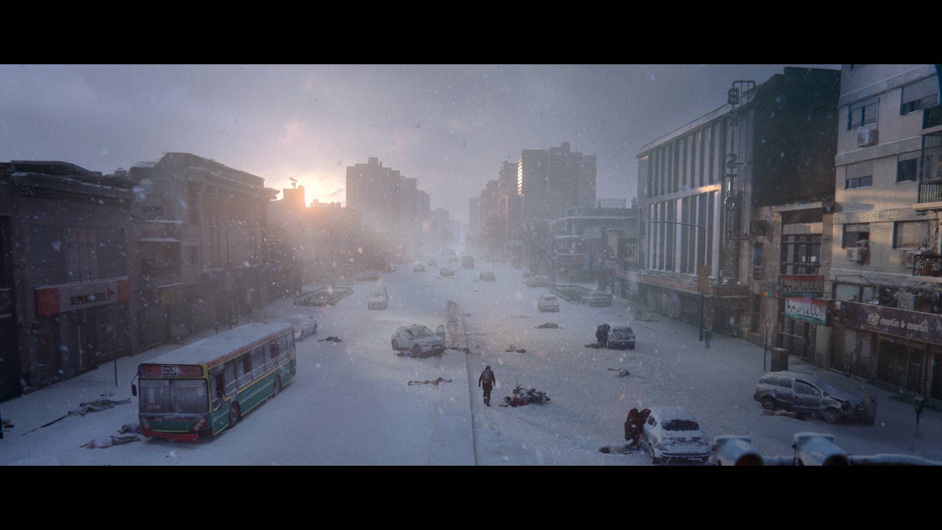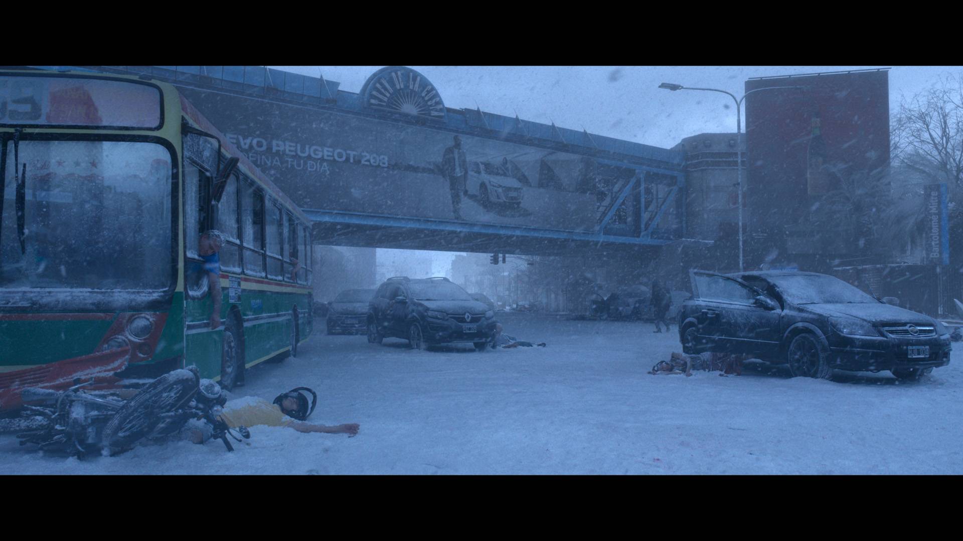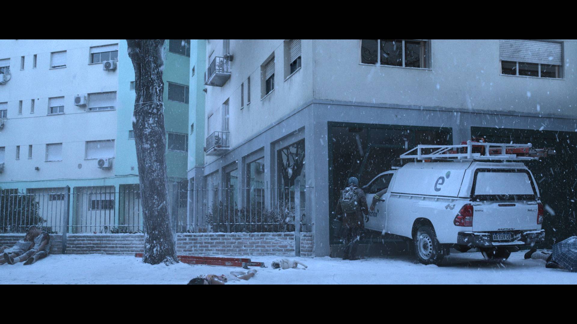 K&S Films and director Bruno Stagnaro contacted us at the genesis of the project to stablish a workflow that allowed us to scan many places of Buenos Aires city with new photogrammetry techniques and cover it with digital snow. This research and development process was crucial for the creation of the show and became the first one in our region that started experimenting at this scale with Unreal Engine and LED volumes to achieve hundreds of in-camera visual effects (ICVFX) shots.